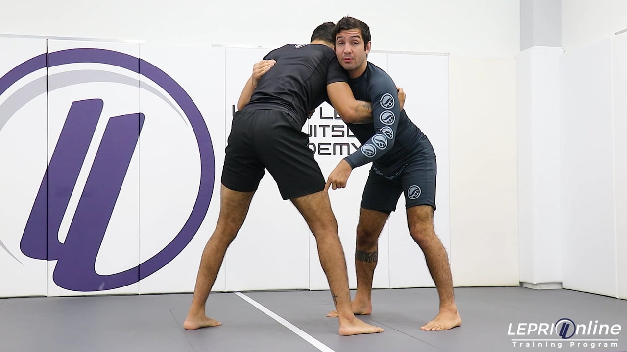 Professor Lucas Lepri teaches how to take the opponent down using the Ouchi Gari, after under hooking the opponent. Lucas and the opponent are pummeling and Lucas is able to slide in and gets the under hook. The opponent is also able to get an under hook on Lucas. Lucas now steps back and to the side to make the opponent step forward. As soon as the opponent steps forward, Lucas goes for the Ouch Gari. He uses his under hook arm to push the opponent as he posts on the mat with his other hand. From here, Lucas is now in the opponent’s closed guard.
