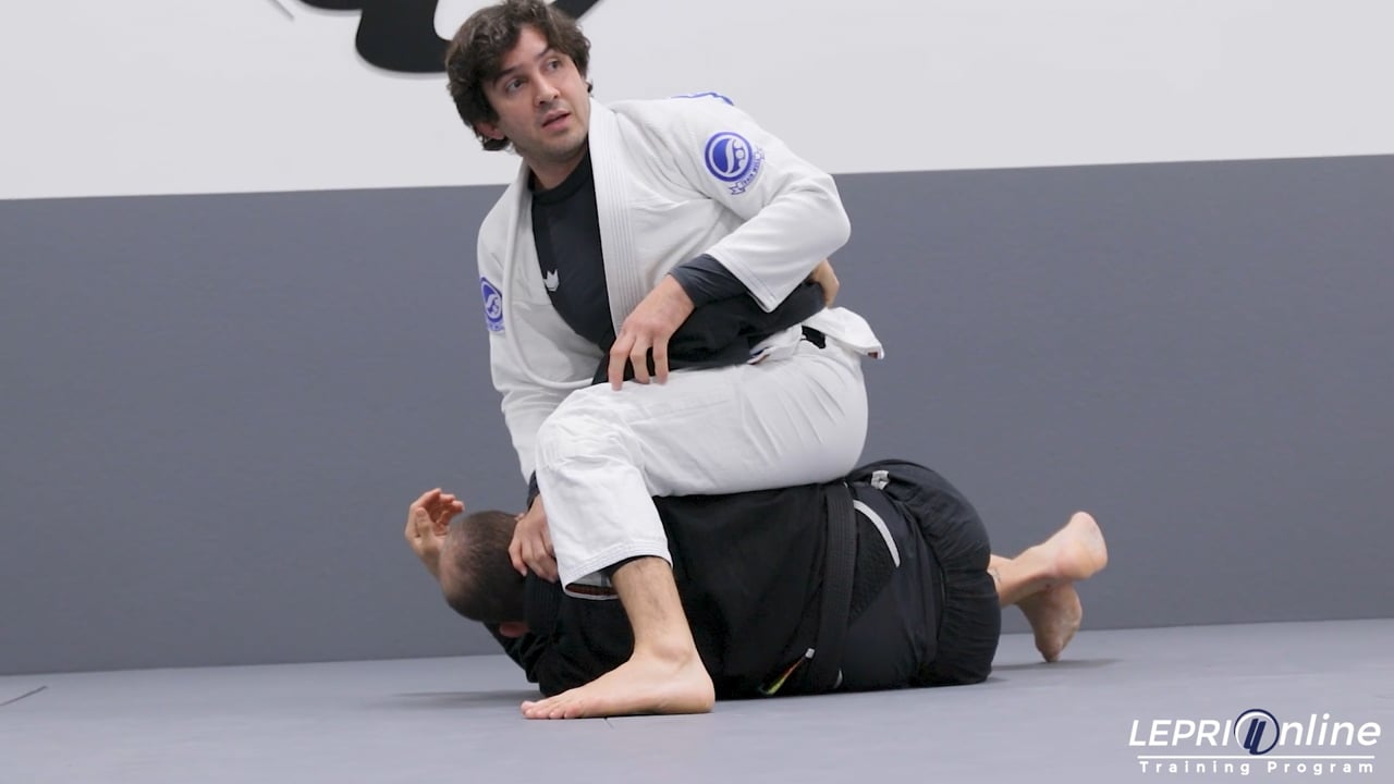 Professor Lucas Lepri demonstrates a dominant mount transition and finish, specifically addressing how to clear the quarter mount. Lucas secures a tight grip on the opponent’s lower back to flatten their hips, then uses heavy pressure to slide his knee across while keeping his toes pointed up to prevent a full guard recovery. To stop a bridge, he maintains a wide, stable base by keeping his outside foot away from the opponent’s shoulder. Once he clears the quarter mount and establishes the position, he "walks" his weight toward the head to isolate an arm, finishing with an armbar from the top or transitioning into an omoplata if the opponent attempts to turn or hide the arm.