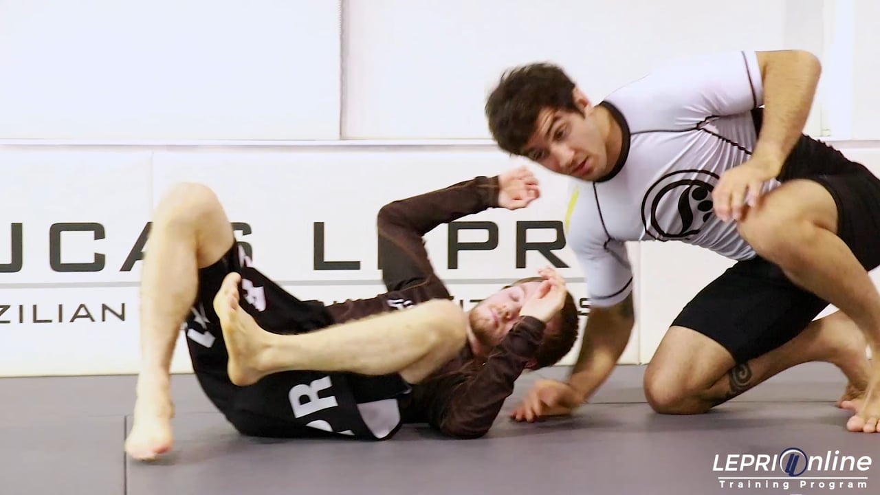 Professor Lucas Lepri shows how to take the opponent down when the opponents tries attacking Lucas' legs.The opponent shoots for Lucas’ legs and he immediately sprawls and puts one arm over the opponent’s neck cupping the chin and blocking the other arm. The opponent tries to stand back up and Lucas raises the elbow, tucks his head inside and reaches for the opponent’s opposite ankle. He then pulls the ankle and pushes with his shoulder to take the opponent down and establishes the side control.